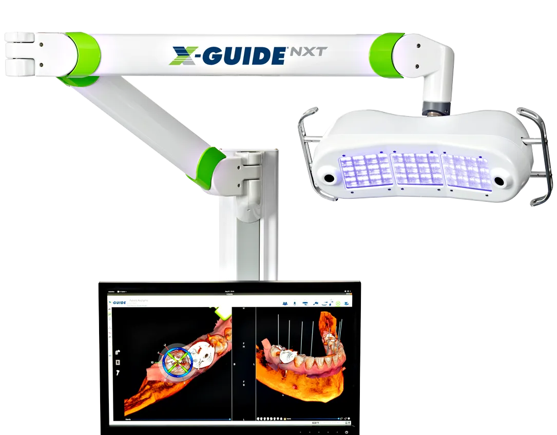 Thanks to X-Guide, we can control the exact position, angle, and depth of your implant with pinpoint accuracy. This system has been shown to be 11X more accurate than freehand surgery, giving you a higher level of safety and predictability.